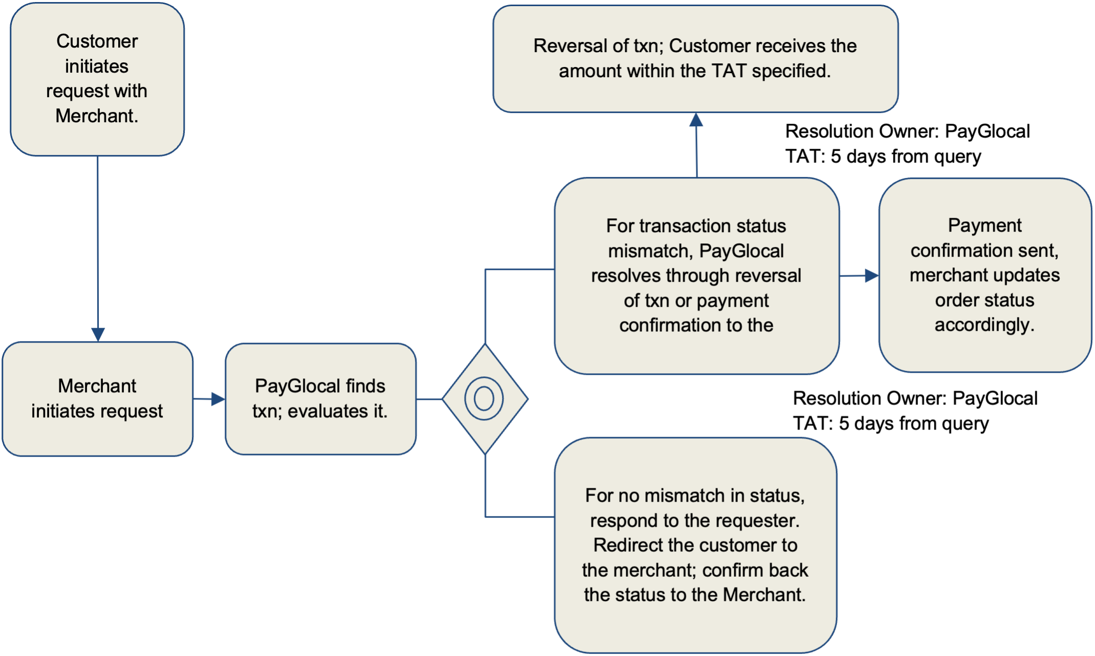 | Transaction Issue | Merchant / PayGlocal | Resolution to be identified between parties participating in transaction flow. Compensate customer as per guidelines with-in TAT. | 5 days |