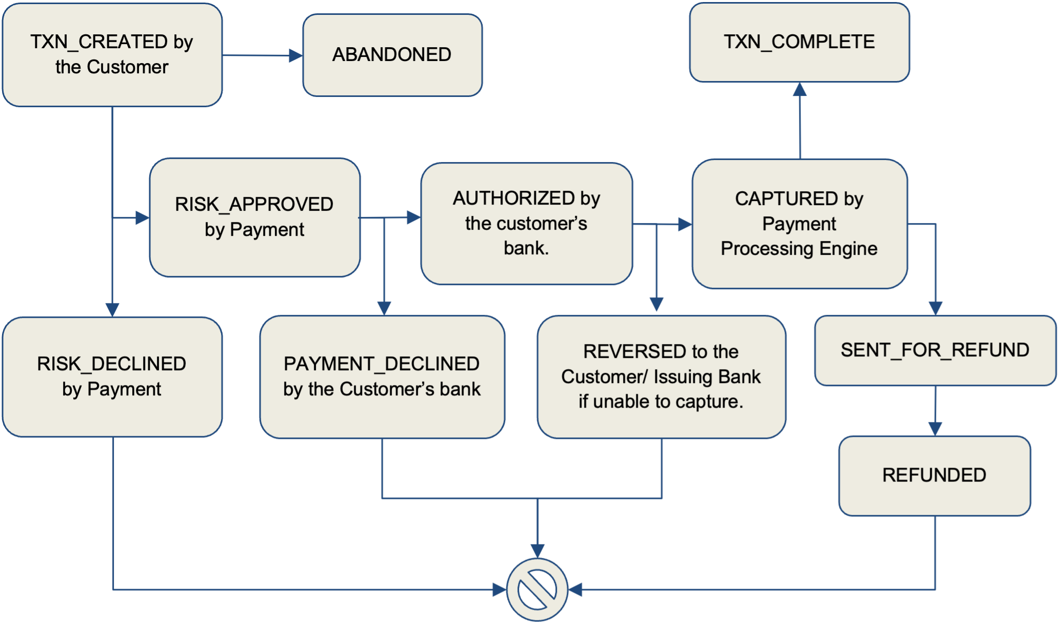 When a Customer initiates a transaction, it is first approved by the Payment Processing Engine and then proceeds to get Authorization from the customer for Funds to be deducted from their account. Once the transaction has been authorized, it is sent for Capture by the Processing Engine, failing which the transaction is reversed and the amount is returned to the Customer account. If the Customer initiates refund for any transaction, the captured transaction is then sent for refund processing.